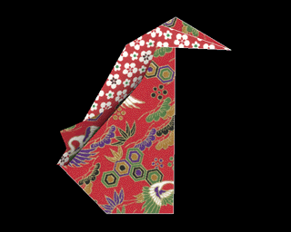 Fig.2 Complex folding realized by combining simple folding. These are two stages in folding a paper crane.