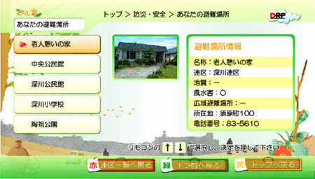 本研究ではその一環として、災害時の避難場所や休日・夜間診療所などの緊急医療施設を案内したり、瀬戸の伝統や文化を伝えるための独自コンテンツを作成し、公開していくことを目的としています。データ放送はテレビ視聴の延長として手軽に利用できる上に、インターネットと比較して高い信頼性の確保できる点で、今後期待される情報伝達メディアの一つと言えます。